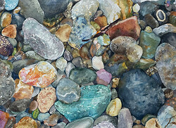 Over the last few years I have been drawn to the natural world and enjoy capturing its detail as well as responding to its ever changing character. A nod to growing up by the sea I record place and time through watercolour painting, usually on Two Rivers handmade paper, of material found on the shoreline; my interest sparked by the abstract forms and patterns encased in stones and shells. In contrast, living in an AONB and conservation area is a long way from my childhood home in a leafy suburb of Bournemouth. I have been struck by how little I knew of the changing seasons and power of the countryside. My art is therefore developing and becoming more abstract in a bid to capture my emotional response to the rural landscape through acrylic, collage and mixed media.
