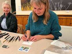 After Louiseās talk and demonstration art group were inspired and so had a go doing some little tiny paintings too.